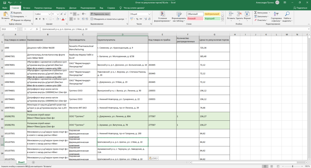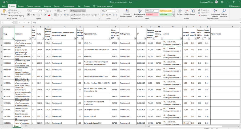 Такой подход стимулирует активную борьбу за рынок среди дистрибьюторов, а для аптечных сетей обеспечивает значительное снижение закупочной стоимости товаров. Платформа формирует отчет по экономии, в котором отражено, по каким позициям и насколько в ходе торгов была снижена цена относительно начальной (максимальной) цены (НМЦ), установленной заказчиком, и относительно первоначальной цены в прайс-листах поставщиков. В среднем такая экономия достигает 2-5%. Отчет позволяет корректировать НМЦ в будущих закупках и оценивать эффективность работы с каждым из поставщиков.