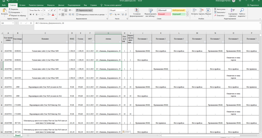 Такими причинами могут быть: отсутствие привязки между справочником аптечной сети и каталогом поставщика; цена поставщика была выше, чем НМЦ, установленная аптекой; поставщик не указал срок годности товара, или указанный срок не соответствует критериям, заданным заказчиком; и др. Анализируя причины нерасторговки, аптечная сеть может своевременно их устранить, снизив тем самым дефектуру и обеспечив присутствие необходимых товаров в торговых точках.